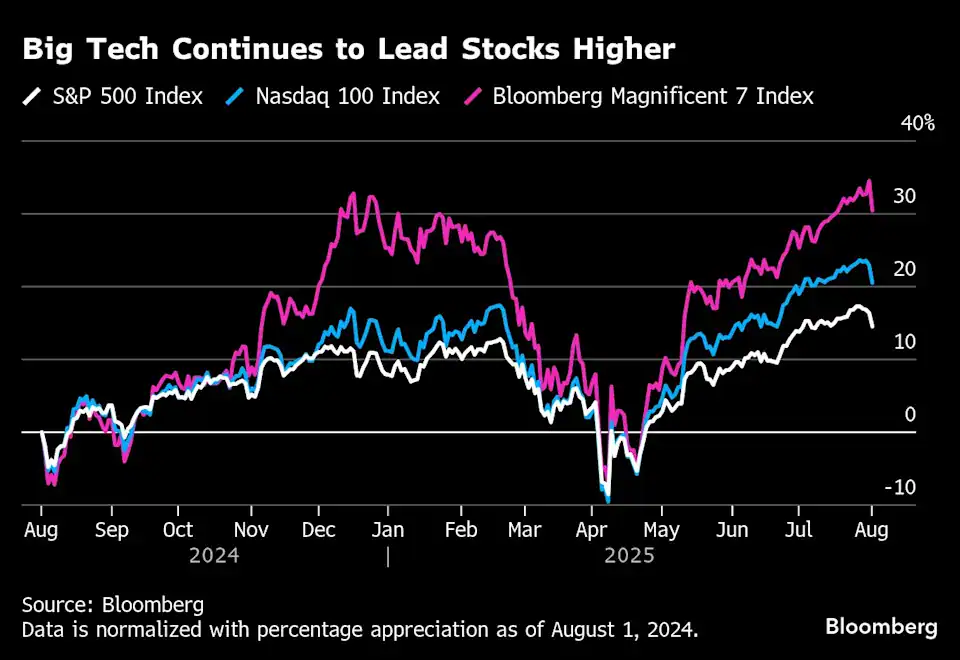 Alphabet Inc. started the season off last week by reporting strong sales, lifted by artificial intelligence. This week, Apple Inc. posted its strongest revenue growth in more than three years, while Meta Platforms Inc. spiked to a record as it beat expectations and outlined aggressive spending on AI. Microsoft Corp. reported robust strength in its cloud business on the back of AI demand, enough to temporarily lift it to a $4 trillion market capitalization, only the second company ever to do so. The stock has risen for 10 straight weeks, its longest streak since 2023.