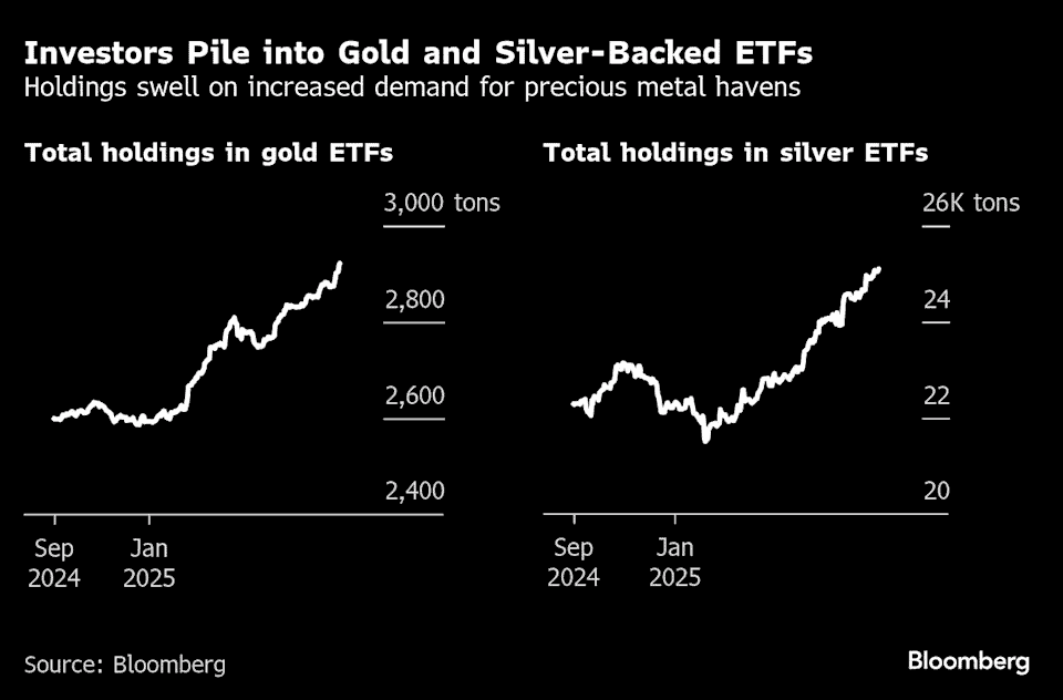 Both gold and silver have more than doubled over the past three years, with mounting risks in geopolitics, the economy and global trade driving have demand. An escalation in President Donald Trump’s attacks against the Fed this year has increased worries over the central bank’s independence, as the president has vowed to gain a “majority, very shortly” on the central bank and bring down rates.