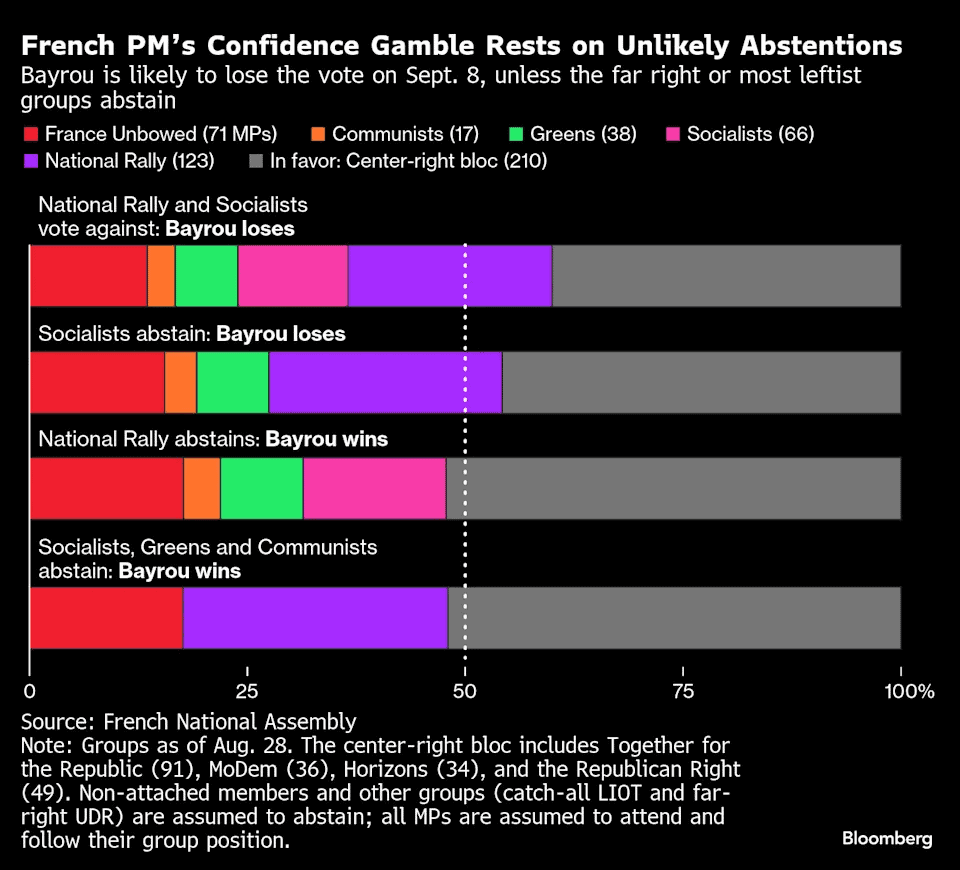 Bayrou calculated that he could pass his proposal if — like for the 2025 budget — he could convince some moderate left-wing lawmakers to back his plan. When it became clear his proposal for 2026 would face harsh opposition, he announced the confidence vote, prompting a selloff in French assets.