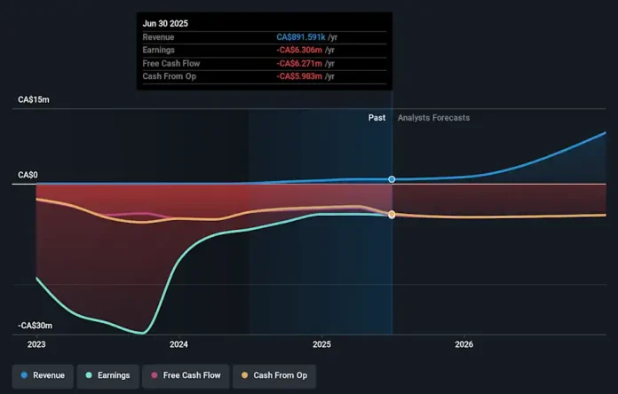 To invest in BTQ Technologies, you need to buy into the vision of a company positioned at the leading edge of quantum computing and post-quantum cybersecurity. The recent Nasdaq uplisting is a meaningful moment that could shift near-term catalysts, particularly by increasing visibility and widening access to institutional and international capital. This may help ease funding risk, the company’s single largest near-term obstacle given its high cash burn, low revenue base (only CA$892,000 last year), ongoing losses, and recent reliance on new equity. In the short run, enhanced liquidity and credibility from the listing could support execution of ambitious tech launches like the Quantum Canary Network and Leonne Framework, or even secure new high-value partnerships. That said, with shares already experiencing high volatility and significant insider selling recently, investors should weigh whether growing institutional attention will meaningfully offset persistent operating losses and a fast-growing but still experimental product suite.