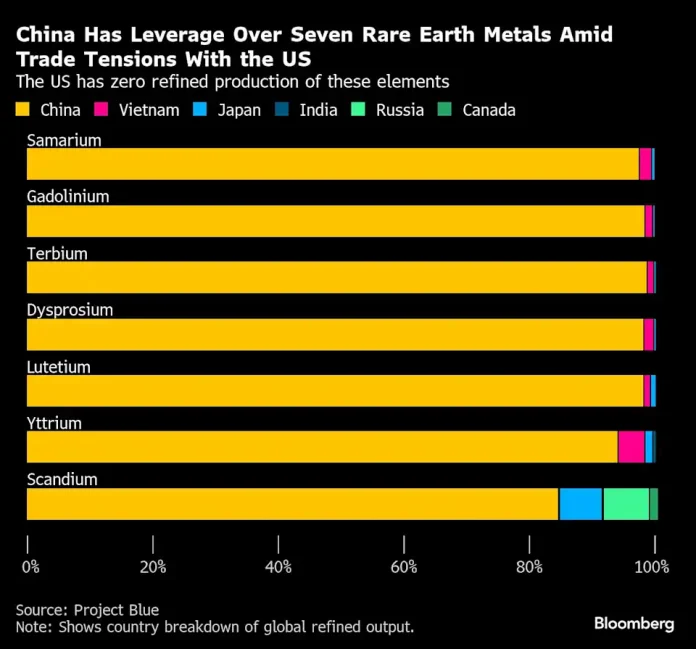 (Bloomberg) — Businesses across the global semiconductor supply chain are bracing themselves for disruptions from China’s most targeted move yet to limit their supplies of rare-earth materials as part of an escalating trade war between the Asian nation and the US.