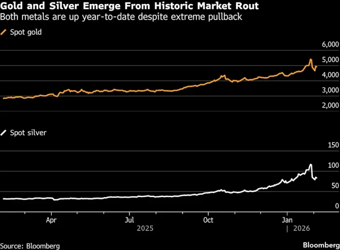 Precious metals soared last month in a rally underpinned by speculative momentum, geopolitical upheaval and concerns about the Federal Reserve’s independence. However, market watchers had warned that the advances had been too large and too swift. The surge came to a sudden halt at the end of last week, with silver seeing its biggest daily drop on record and gold plunging the most since 2013.