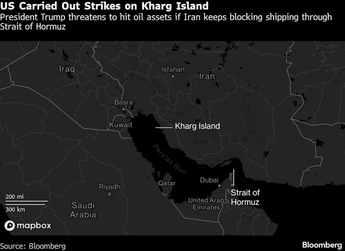 The outlet said more than 15 explosions shook Kharg Island, with the targets including air-defense systems, a naval base, an airport control tower and a helicopter hangar. It didn’t specify the scale of the damage.