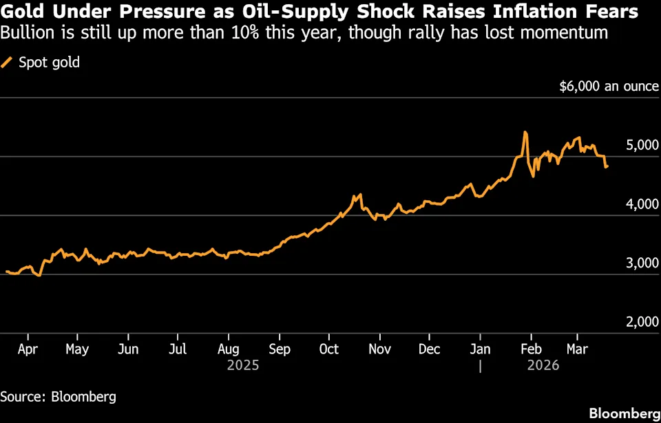 “Gold has entered a consolidation period,” Christopher Wood, global head of equity strategy at Jefferies, said in an interview with Bloomberg TV. “The signal that gold has peaked for now is that it did not make a new high on the outbreak of this conflict,” he said, adding that he expected bullion to trade in a range between $4,500 and $5,500 an ounce.