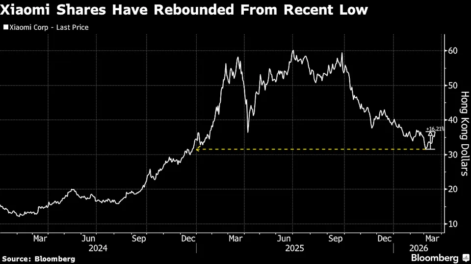 The Hong Kong-listed stock jumped as much as 5.8%, making it the best performer on the Hang Seng Tech Index — which itself fell more than 2% after Tencent Holdings Ltd. earnings disappointed investors and as the war in Iran escalated. AI-fueled optimism adds to a recent recovery in Xiaomi shares following a 45% plunge, which had been driven by concerns that surging memory prices would erode its profitability.